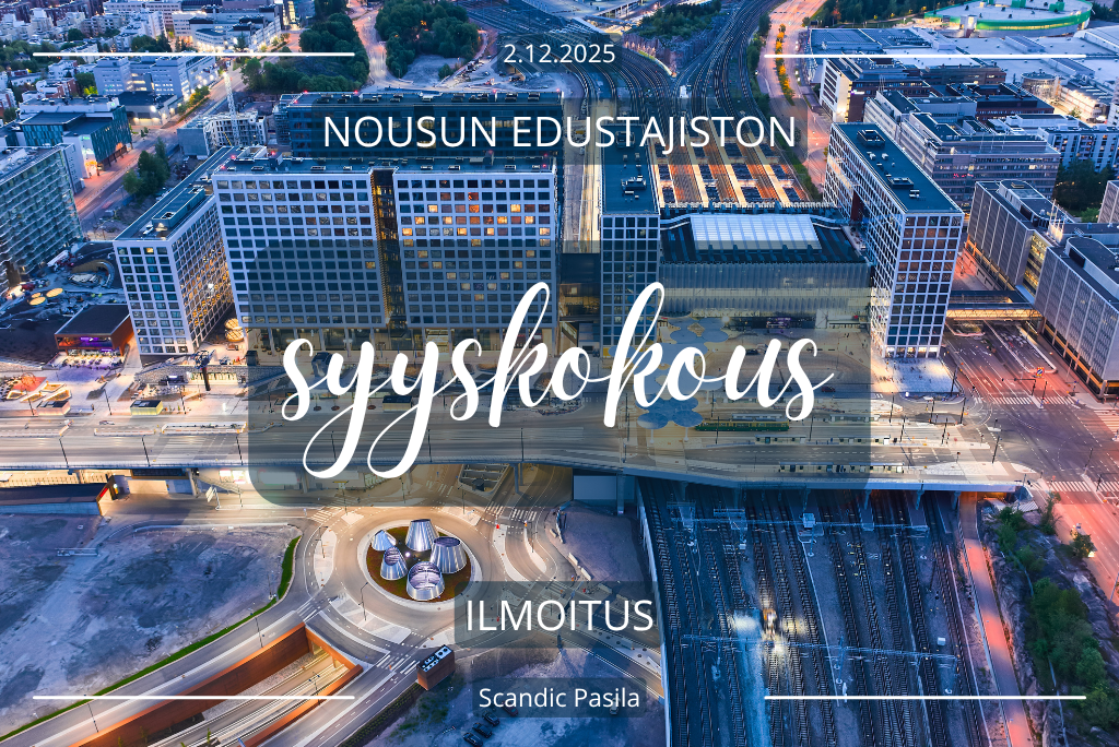 Ammattiyhdistys Nousu ry:n edustajiston sääntömääräinen syyskokous pidetään 2.12.2025.